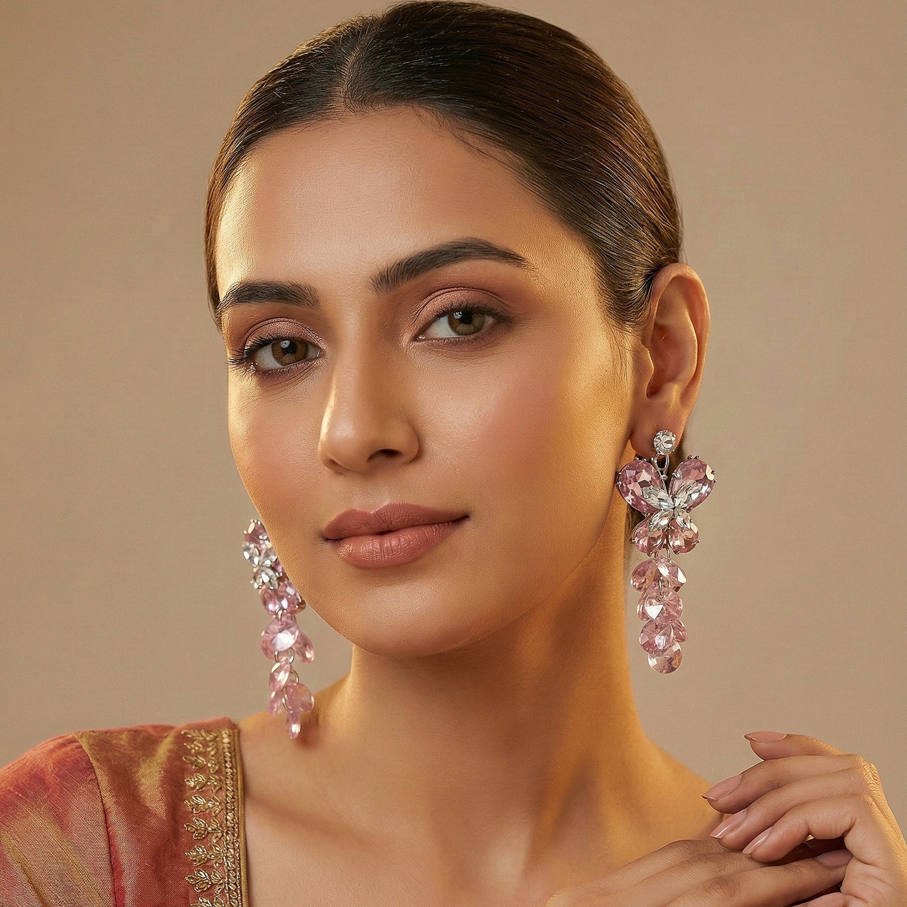 • Color: Soft blush pink with crystal highlights