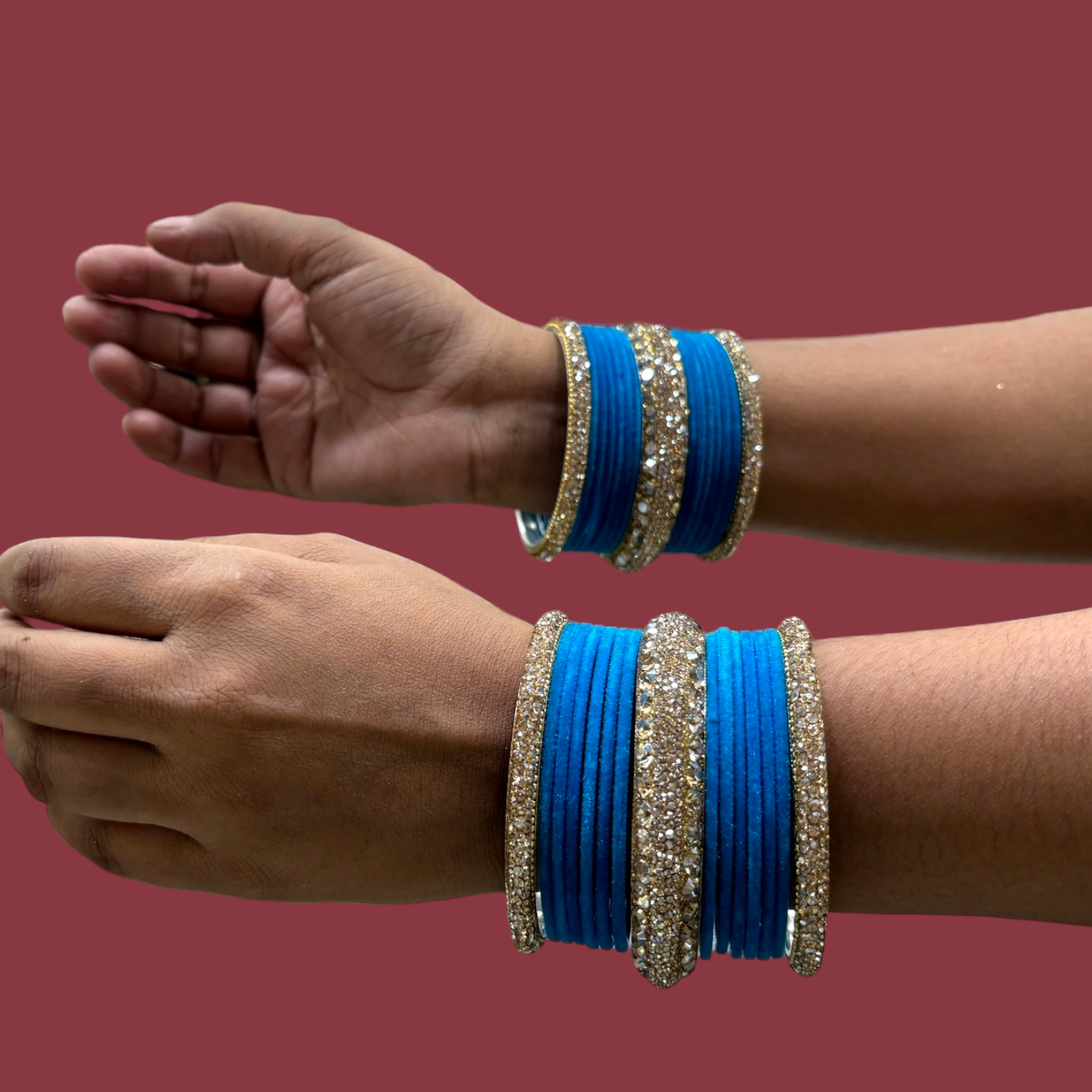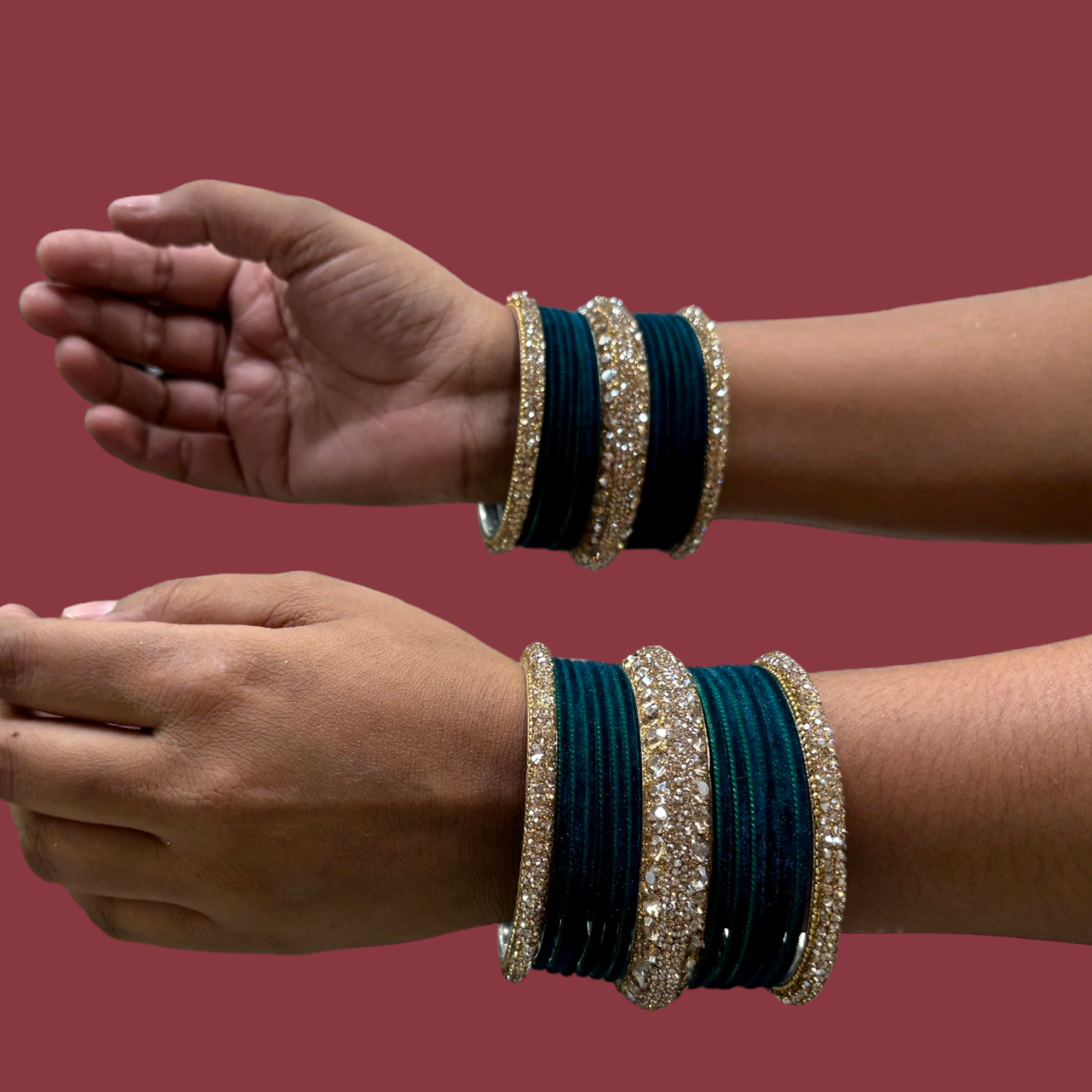 Contains: 24 piece of velvet metal bangles with 6 Cream kada