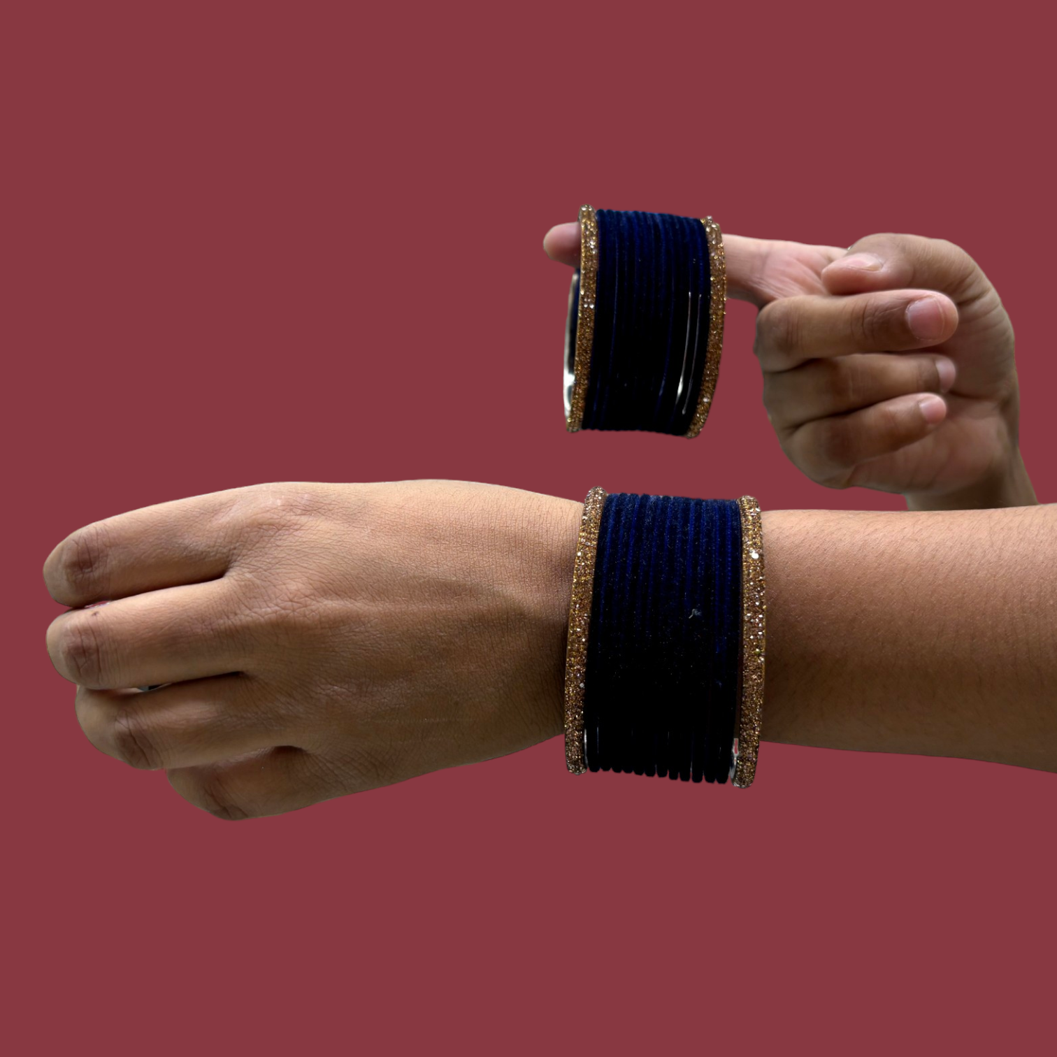 Contains: 24 piece of velvet bangles with 4 Silver kada