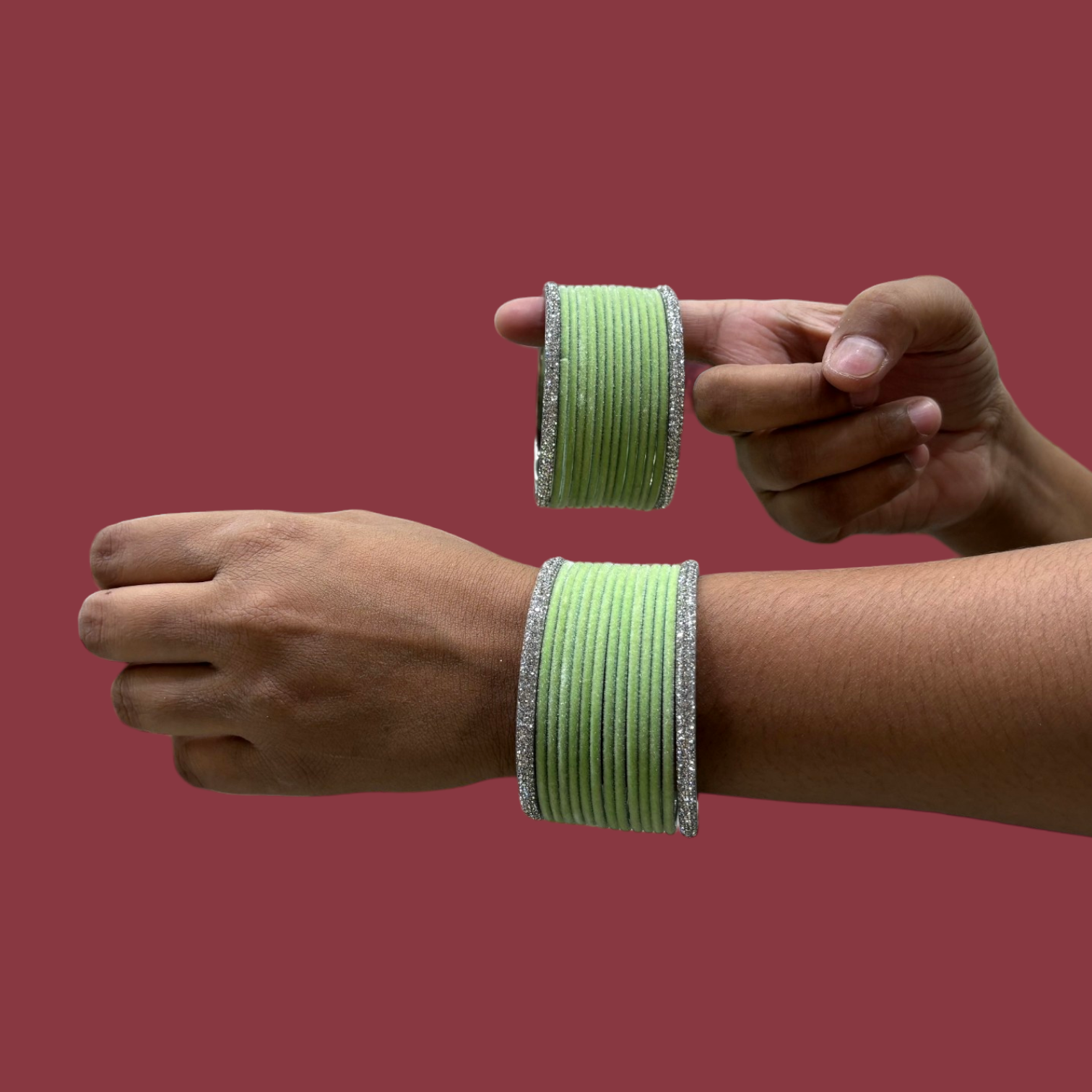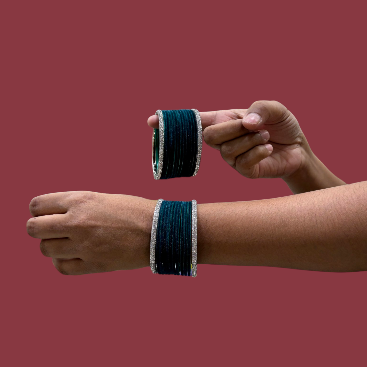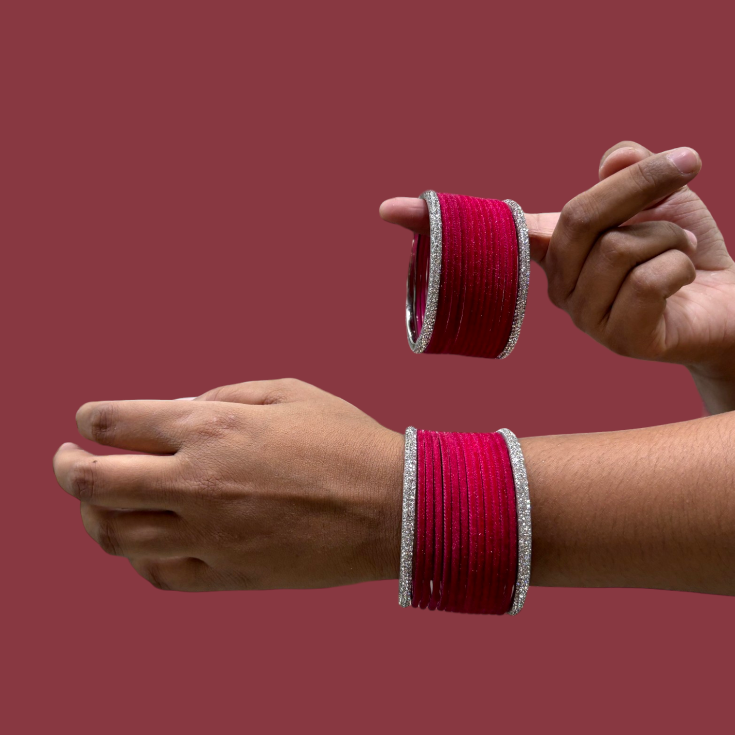 • Contains: 24 piece of velvet bangles with 4 Silver kada